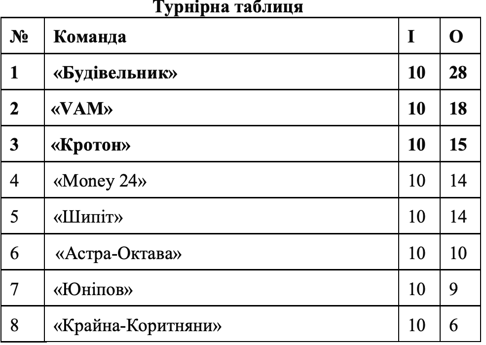 «VAM» – «Крайна-Коритняни» – 9:3.