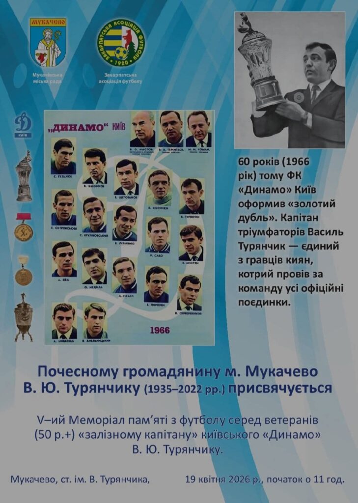 19 квітня у Мукачеві проведуть V Меморіал пам’яті легендарного футболіста, «залізного капітана» київського «Динамо» Василя Турянчика. Початок заходу — об 11:00.