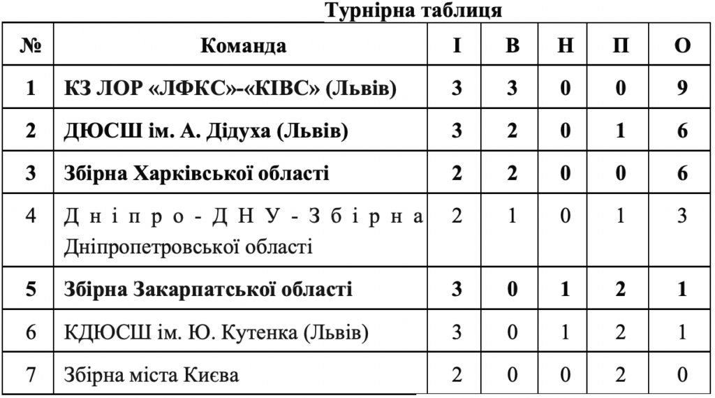 У зведеній турнірній таблиці збірна Закарпатської області посідає п’яте місце. Другий тур відбудеться наприкінці травня у Львові. Він стане фінальним і об’єднає команди обох груп у боротьбі за підсумкові місця.